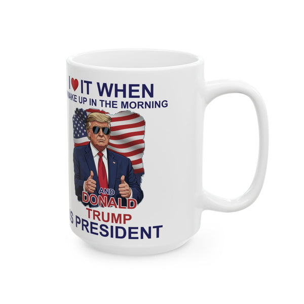 Patriotic Two Thumbs Up “I Love Waking Up in the Morning” Political Ceramic Mug (15oz)